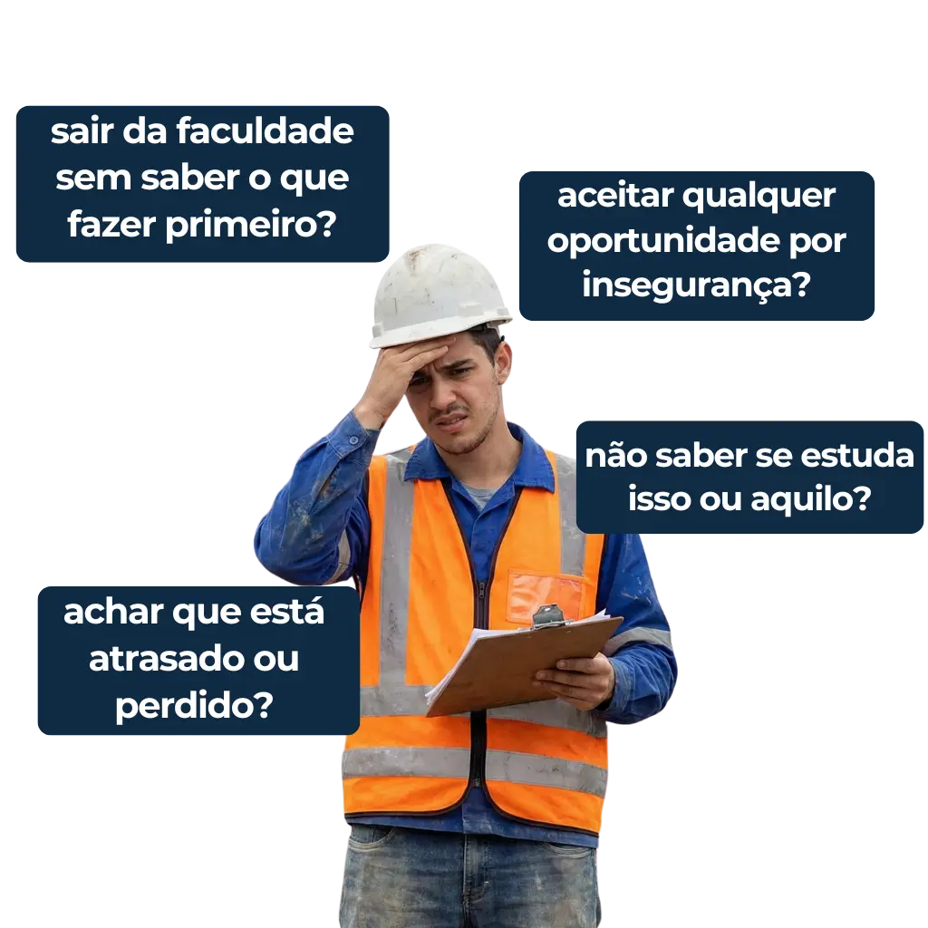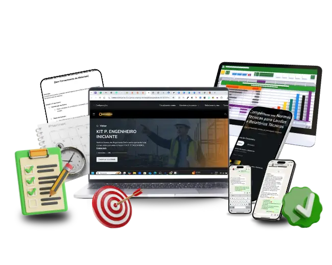 Com anos de experiência prática no mercado da construção civil, desenvolveu o Kit p/ Engenheiro Iniciante para orientar engenheiros recém-formados a evitarem erros comuns, tomarem decisões mais seguras e começarem a carreira com direção e confiança.